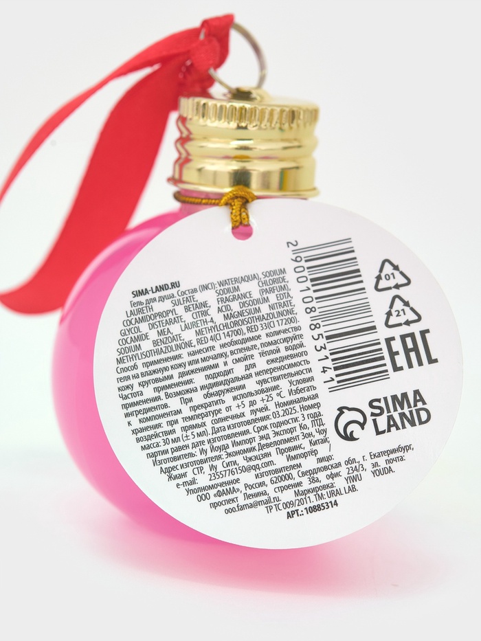 Технические характеристики Гель для душа в форме ёлочного шара, 30 мл, аромат ванильный десерт, URAL LAB