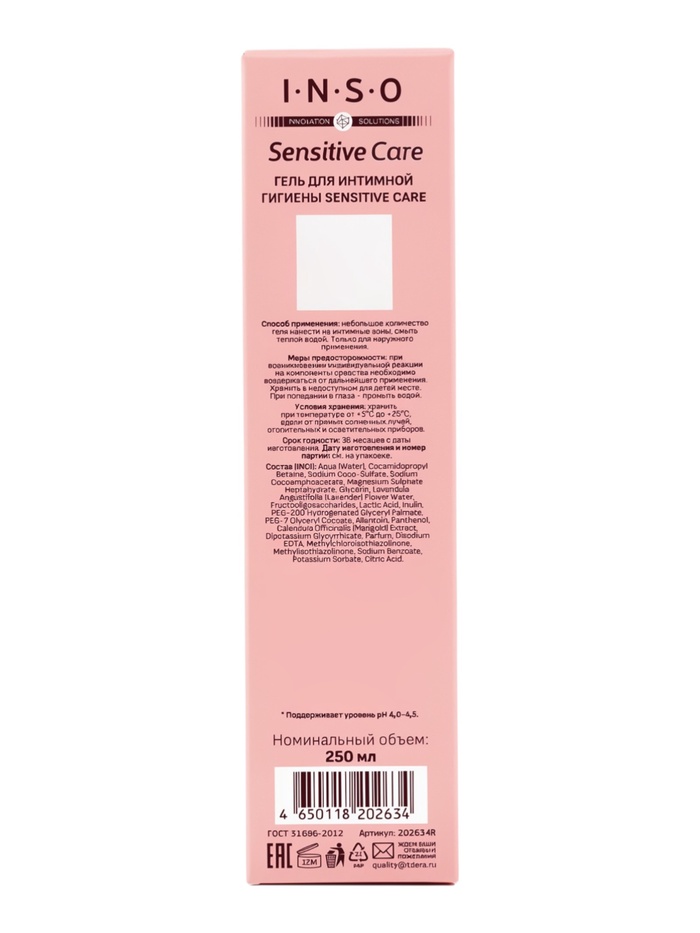 Технические характеристики Гель для интимной гигиены INSO Sensitive Care, 250 мл