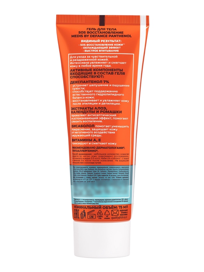 Гель для тела Medis by Defance, SOS быстрое восстановление с пантенолом 7 %, 75 мл