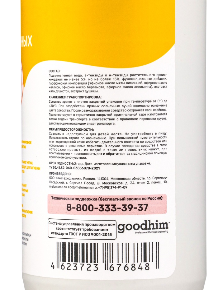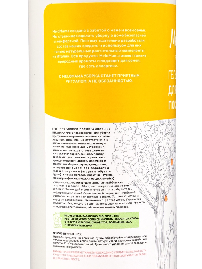 Технические характеристики Средство для уборки после животных MeloMama, гель, мятный свежий аромат, 0.5 л
