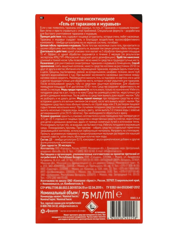 - Экономичный объем 75 мл: тюбика объемом 75 мл достаточно для обработки нескольких помещений или для многократного применения в течение сезона.