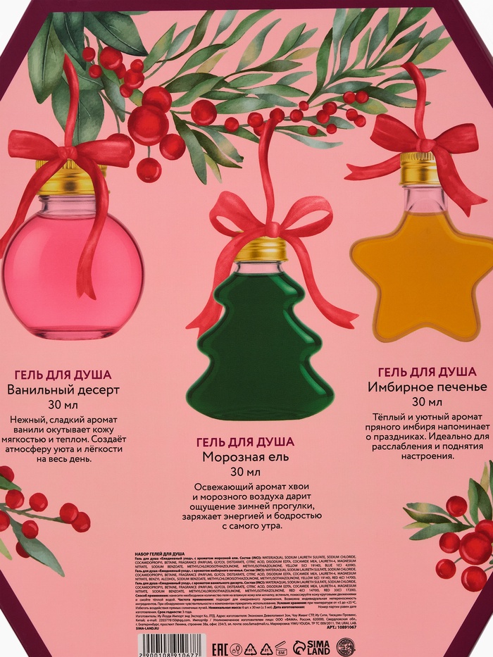 Технические характеристики Подарочный набор «С Новым годом», гель для душа 6 шт × 30 мл, URAL LAB