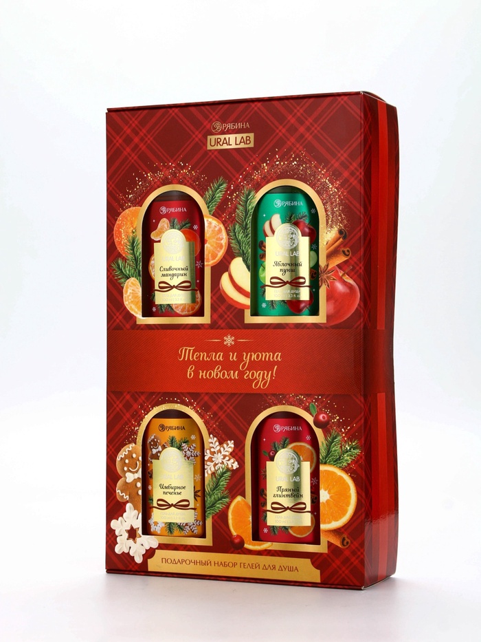 Гели для душа «Тепла и уюта в Новом году», набор 4 шт. × 100 мл, URAL LAB