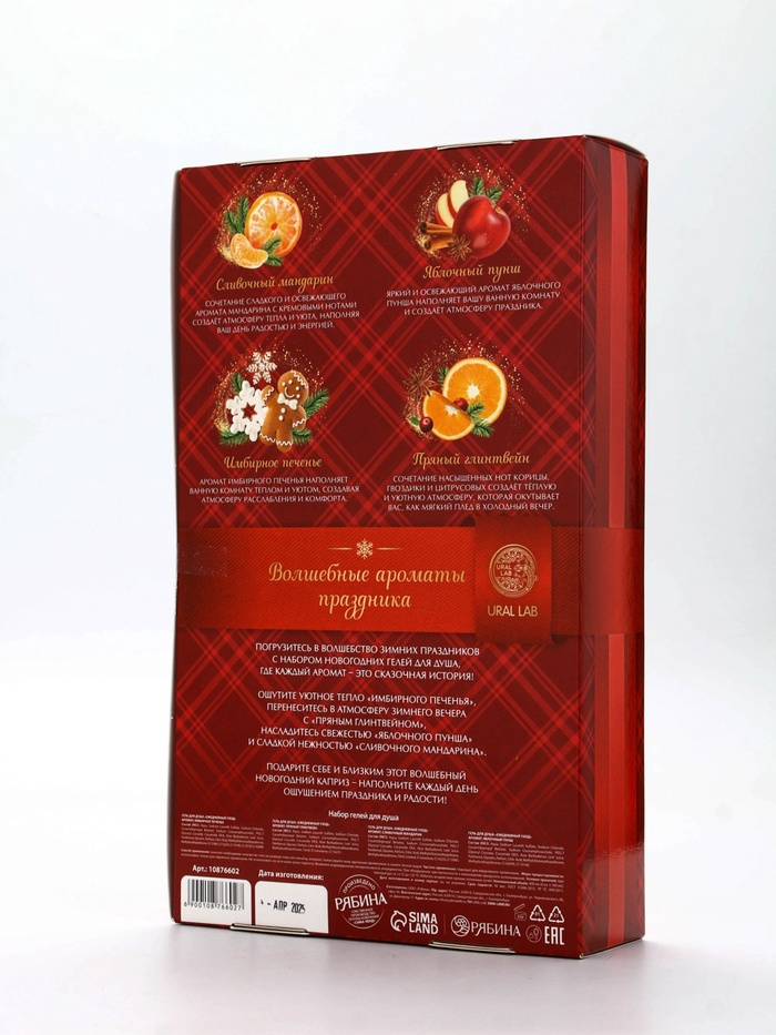 Технические характеристики Гели для душа «Тепла и уюта в Новом году», набор 4 шт. × 100 мл, URAL LAB