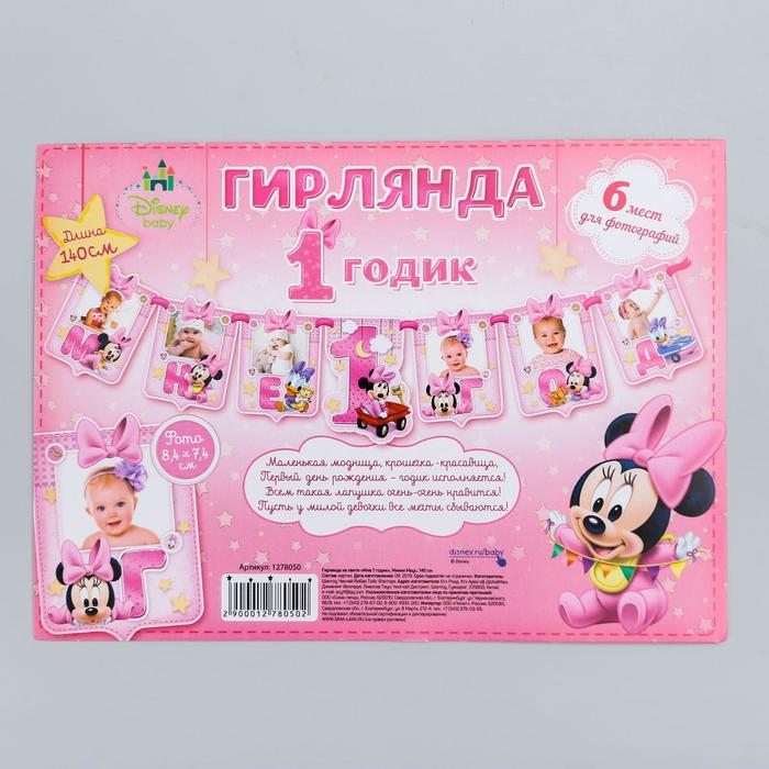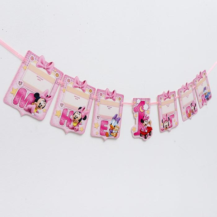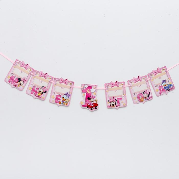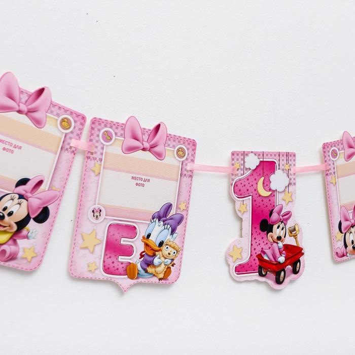 Гирлянда на ленте «Мне 1 год», с 6 карточками для фото, Минни Маус