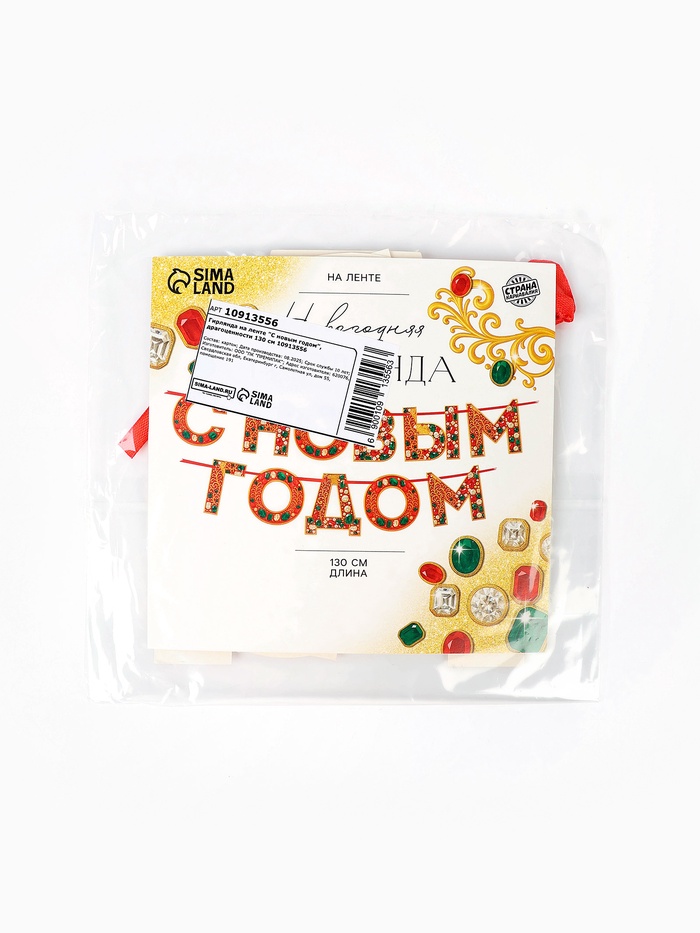 Гирлянда на ленте «С новым годом», драгоценности, 130 см