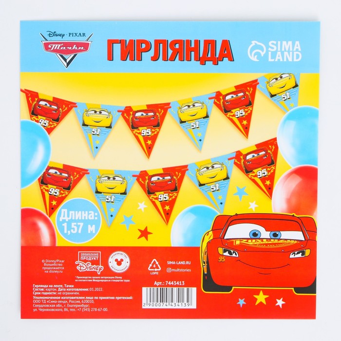 Технические характеристики Гирлянда на ленте треугольник, длина 1,57 м, 10 подвесов, Тачки