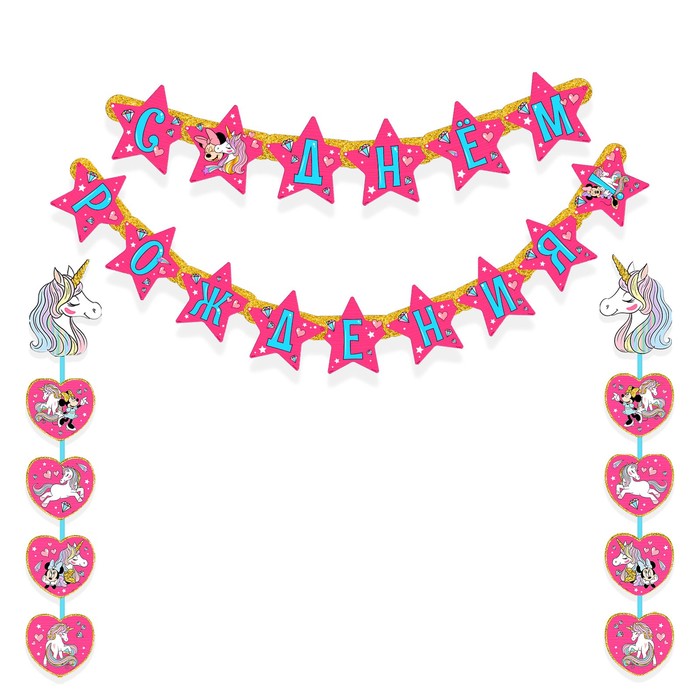 Технические характеристики Гирлянда на люверсах "С Днем рождения!", длина 172 см, Минни Маус