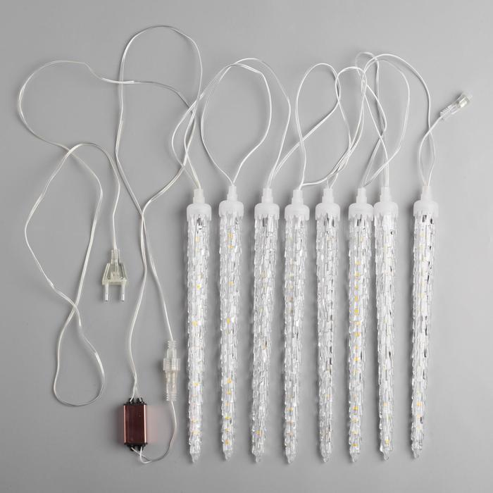 Гирлянда «Сосульки рифленые» 2.5 × 0.3 м, IP65, прозрачная нить, 192 LED, свечение фиолетовое с эффектом стекания, 12 В