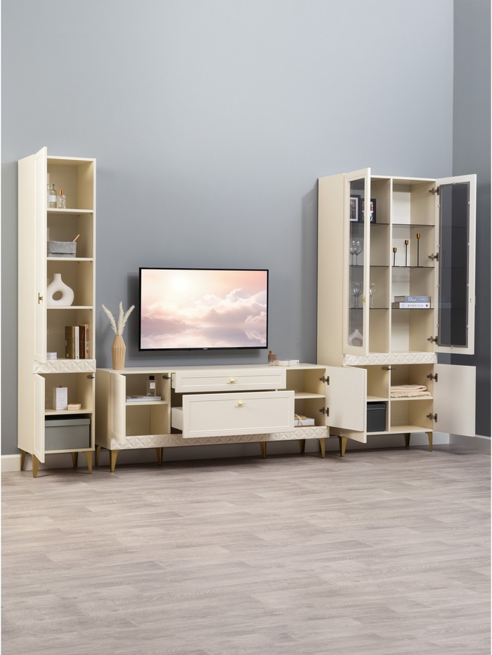 Гостиная «Марион», 3 предмета, компоновка 2, цвет слоновая кость