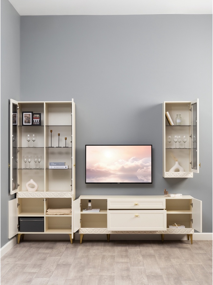 Компактное и элегантное решение для оформления гостиной в классическом стиле. Светлый оттенок «Слоновая кость» наполняет пространство воздухом и светом, создавая ощущение уюта и визуальной лёгкости.