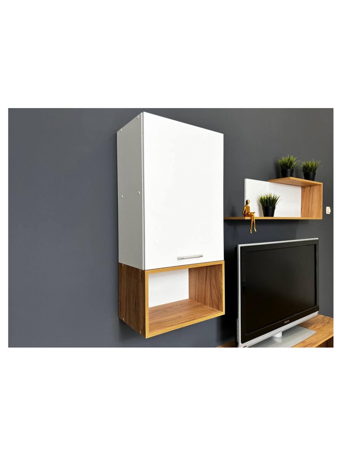 Современная гостиная «Одди» в сочетании белого цвета с оттенком дуб золотой объединяет стильный дизайн и функциональность. Модель предназначена для хранения книг, декоративных элементов и аксессуаров, создавая аккуратное и гармоничное пространство в гостиной.