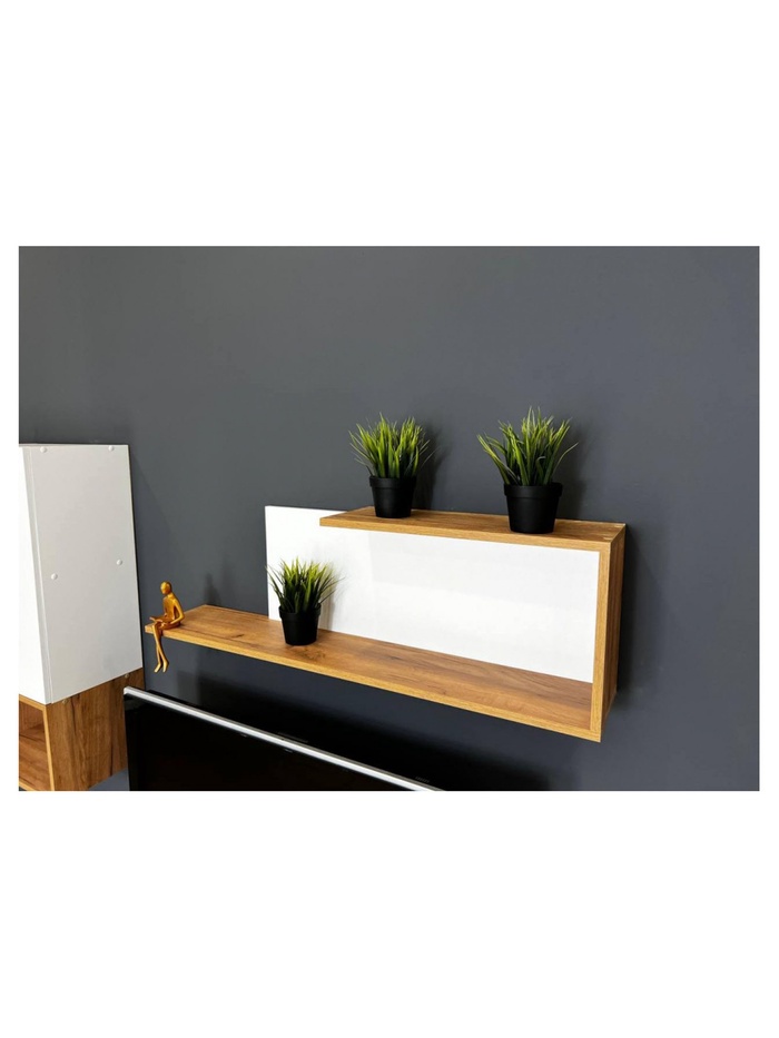 Каркас выполнен из прочного ЛДСП, что обеспечивает надежность и долговечность конструкции. Контрастное сочетание белого и теплого оттенка дуб золотой делает интерьер уютным и визуально привлекательным, гармонично вписываясь в различные стили оформления комнаты.