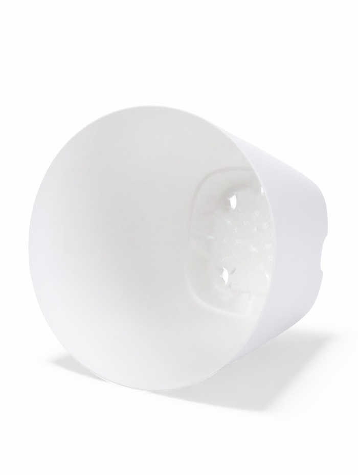 - Прочный пластик: материал выдерживает нагрузку от тяжёлого влажного грунта. Белый цвет сохраняет нейтральность в разных интерьерах.
