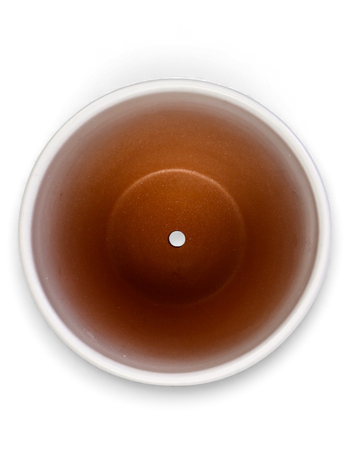 Продуманная конструкция: горшок создан для ежедневного использования. Дренажное отверстие и глубокий поддон помогают организовать правильный полив. С таким горшком уход за растением становится проще, а его размещение на столе или подоконнике — эстетически завершённым.
