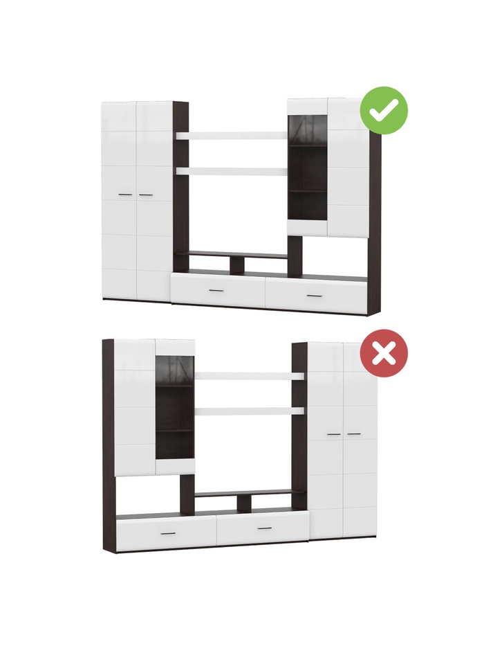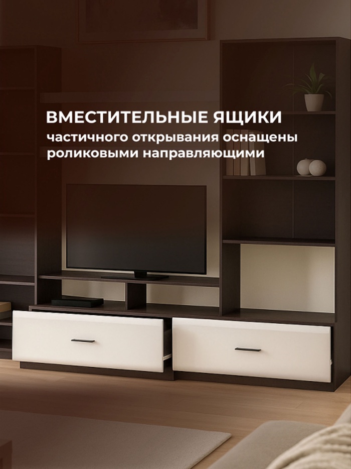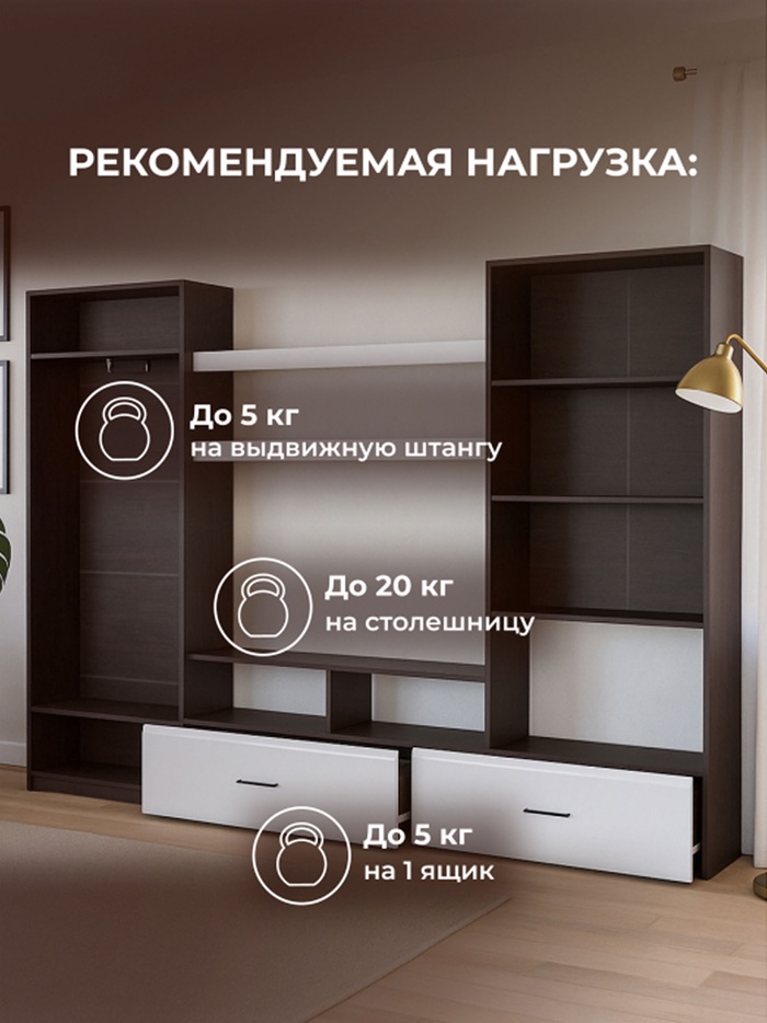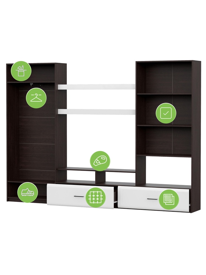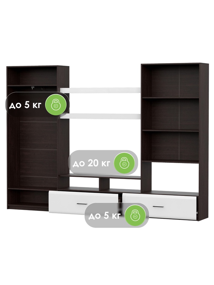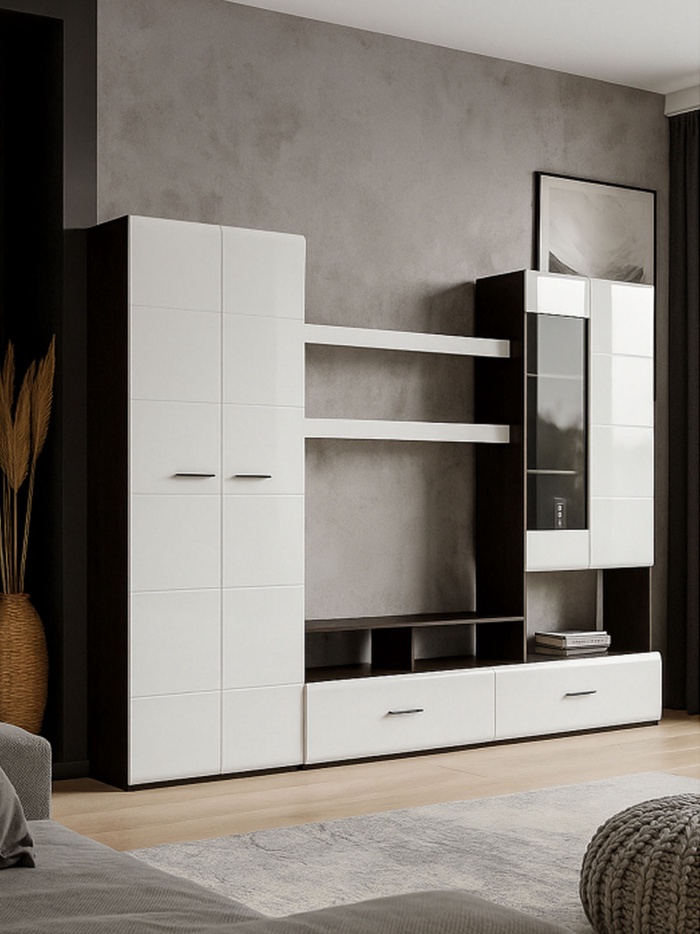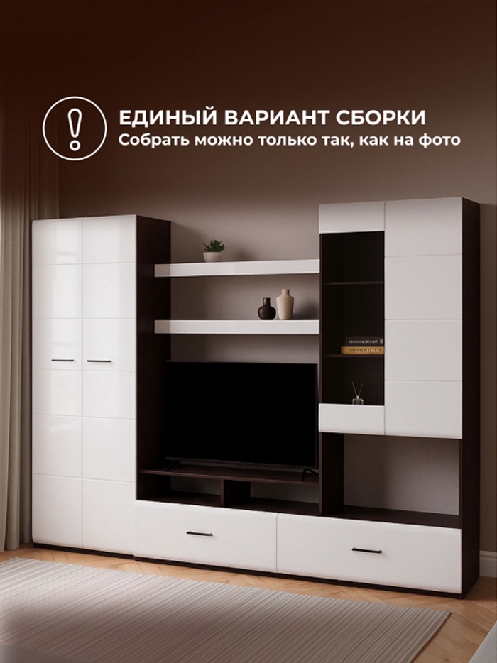Технические характеристики Готовая гостиная Jimenez дуб венге / белый глянец