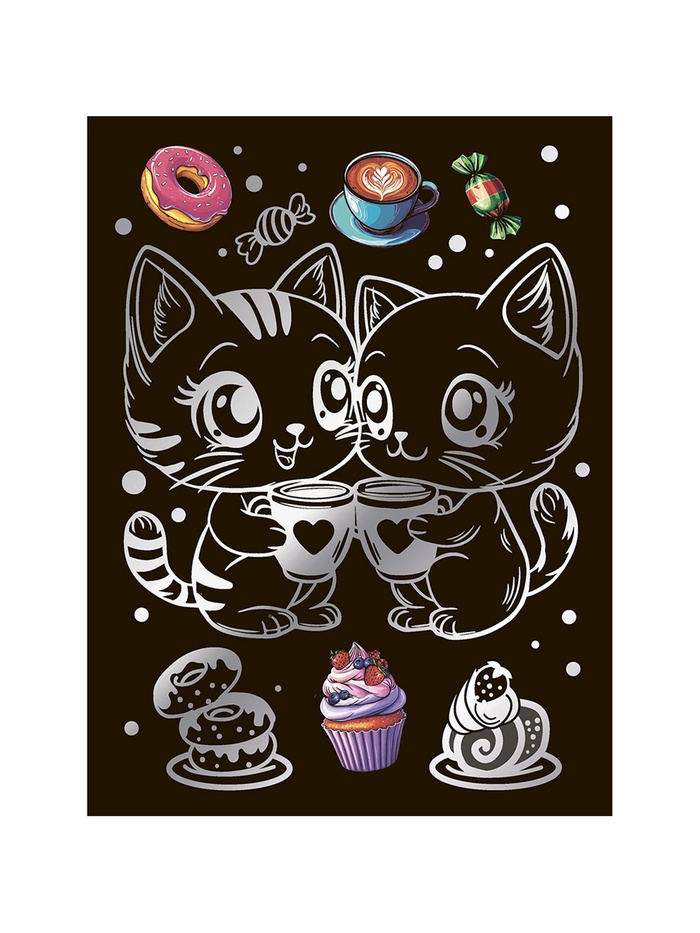 Технические характеристики Гравюра 18*24 "Чаепитие котят" (серебро) Гр-773