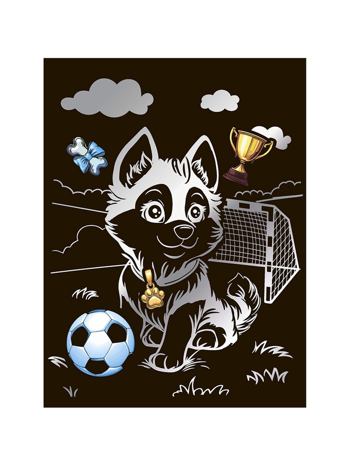 Технические характеристики Гравюра 18*24 "Хаски-футболист" (серебро) Гр-772