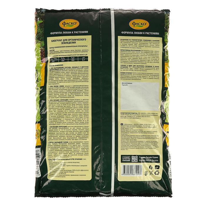 Технические характеристики Грунт для рассады и органического земледелия Фаско с биогумусом 10л