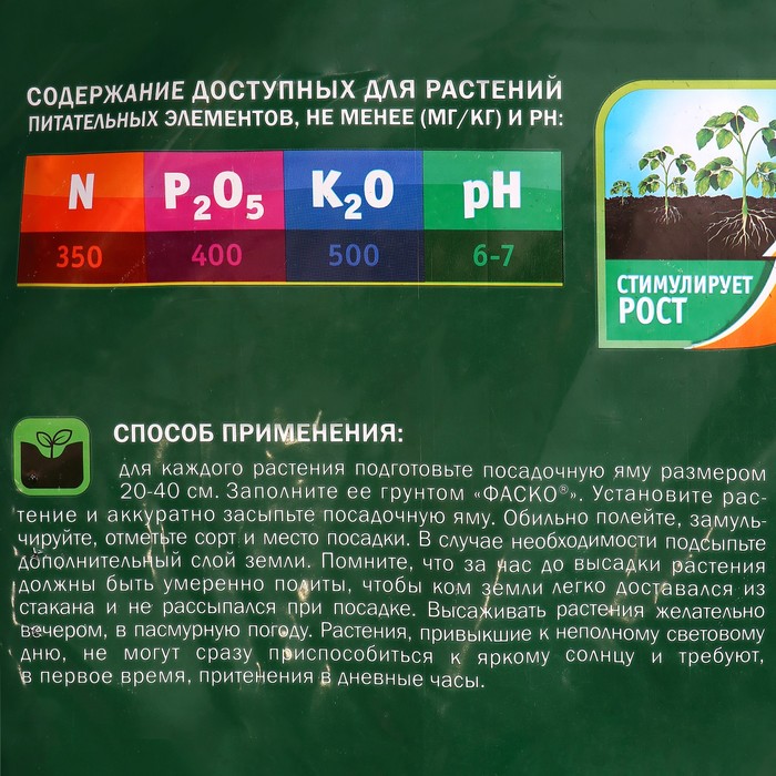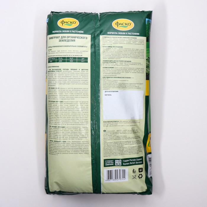 Технические характеристики Грунт для рассады и органического земледелия Фаско с биогумусом 50л