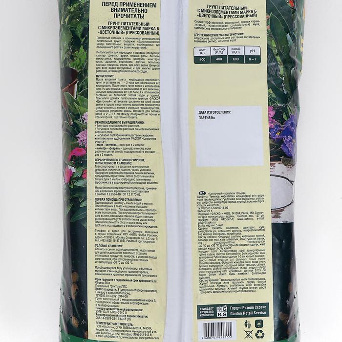 Технические характеристики Грунт для цветов Фаско Цветочный прессованный 25 л.