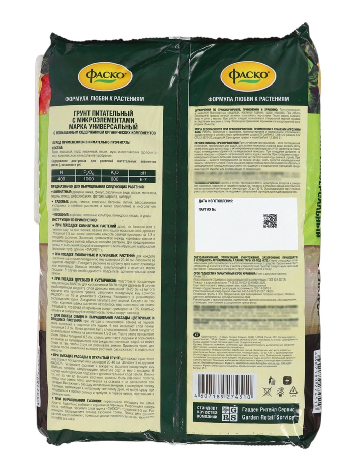 Универсальный грунт «Фаско» - это полностью готовый к использованию питательный субстрат для выращивания самых разных культур. Он подходит для рассады овощей и цветов, для посадки комнатных растений, для заполнения грядок и контейнеров. Сбалансированный состав и нейтральная кислотность создают идеальные условия для роста и развития растений на всех этапах.