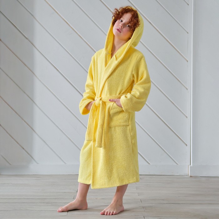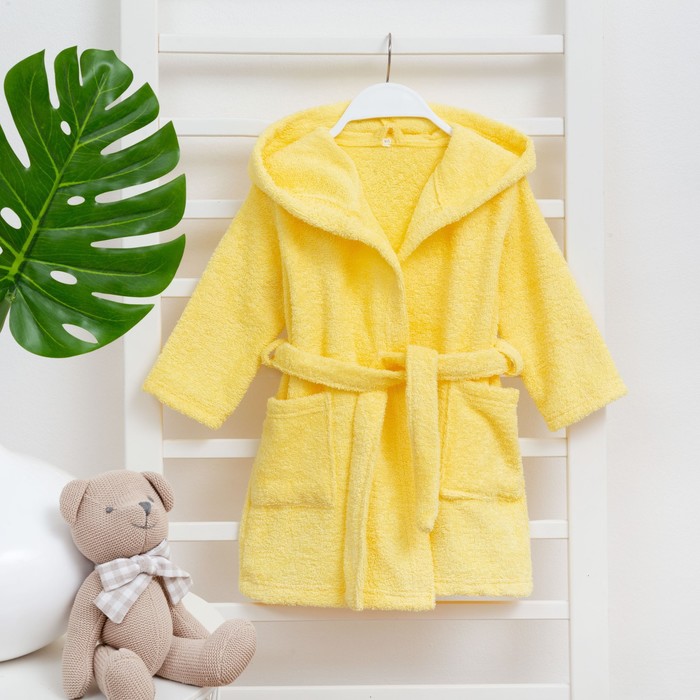 Халат махровый детский Экономь и Я, р-р 30, цвет светло-жёлтый, 320 г/м2, 100% хлопок с AIRO
