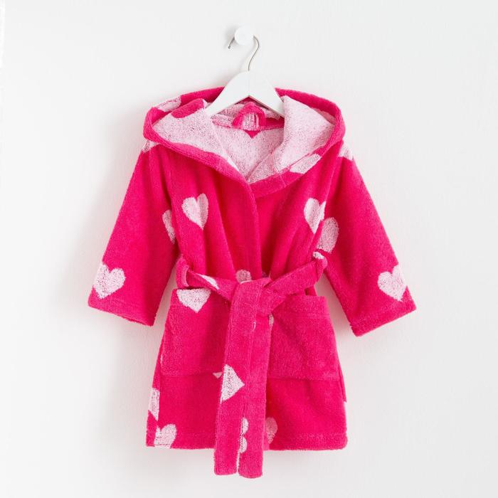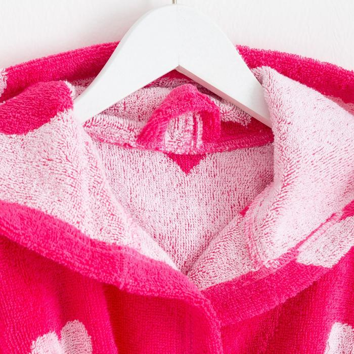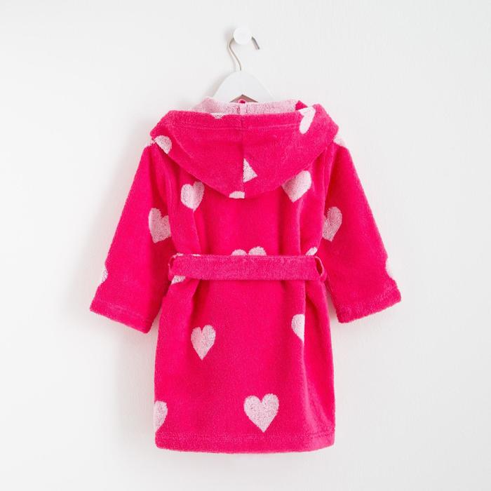 Халат махровый детский Крошка Я «Сердечки» размер 34, цвет розовый, 100% хлопок 360 г/м2