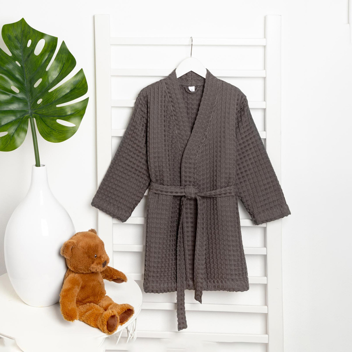 Халат вафельный детский Крошка Я Boho размер 34 (122-128 см) светло серый, 100% хлопок 290 г/м²