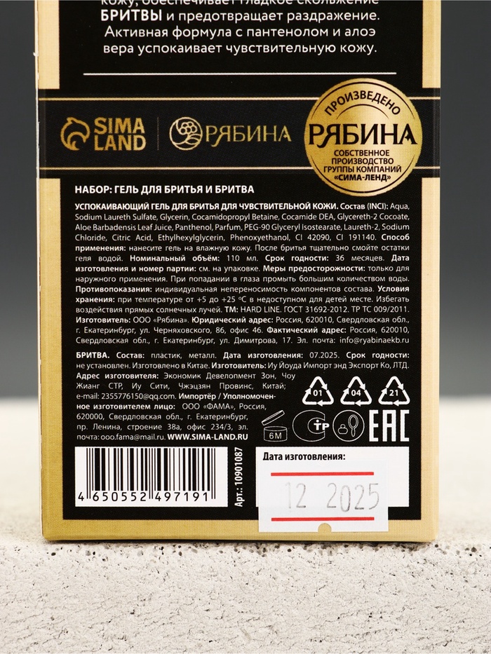 | Составляющие набора | Бритвенный станок; Гель для бритья |