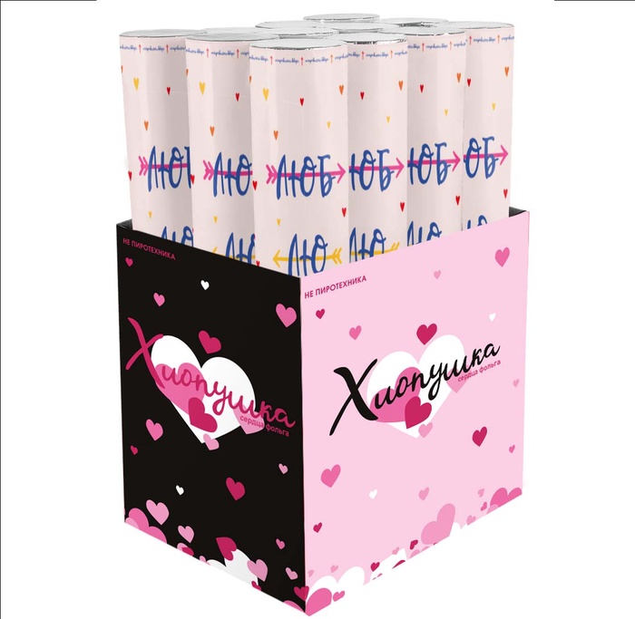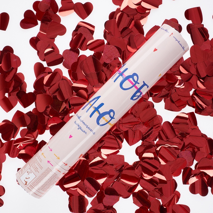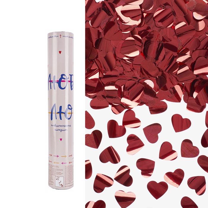 Технические характеристики Хлопушка пневматическая "Люблю, Сердца" фольга, красный, металлик" (12/30 см)