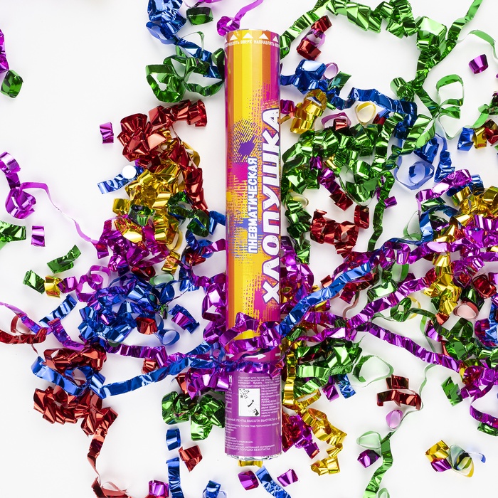 Технические характеристики Хлопушка пневматическая "Праздничный фейерверк"серпантин фольга,ассорти,металлик,(24/60)