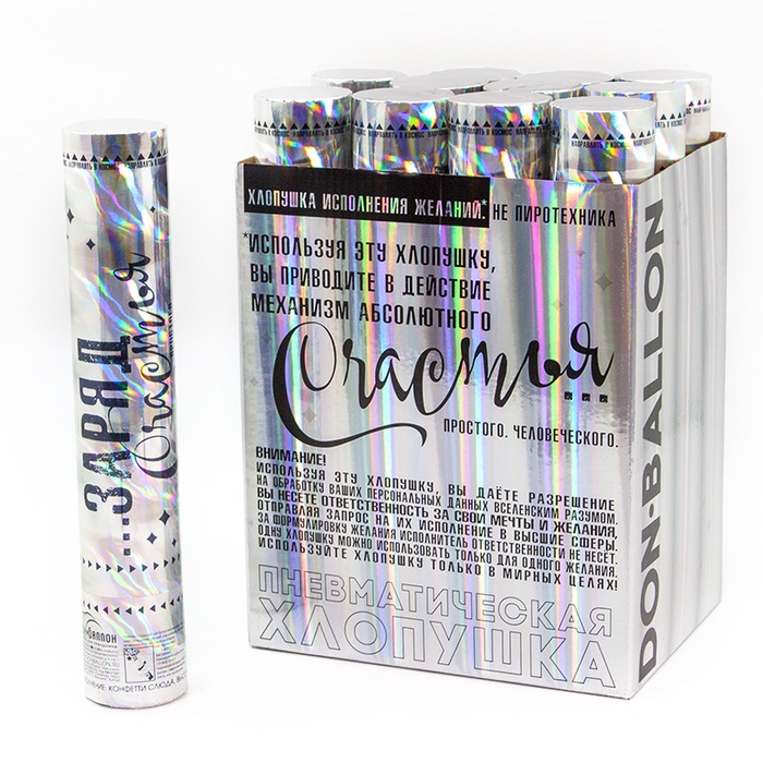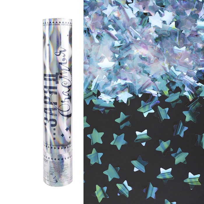 Технические характеристики Хлопушка пневматическая "Заряд Счастья!", звезды фольга, хамелеон (12/30 см)