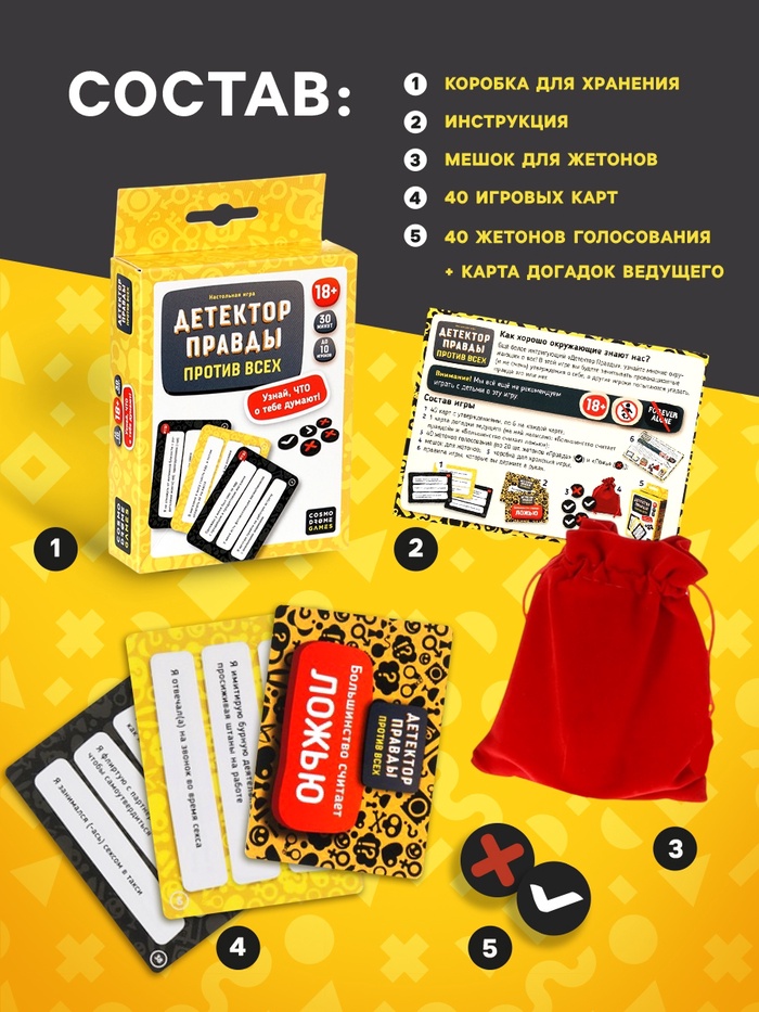 Технические характеристики Игра для взрослых «Детектор правды. Один против всех»