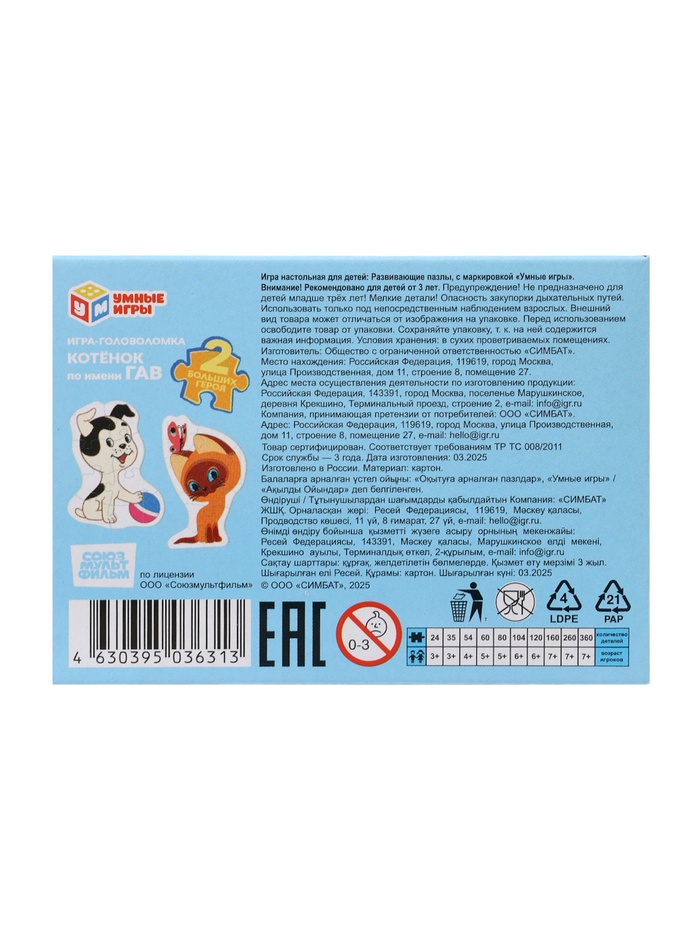«Котёнок по имени Гав» — это не просто игра, а способ провести время с пользой. Готовые пазлы можно использовать для украшения комнаты или как тему для обсуждений после игры. Этот набор станет отличным подарком для детей, которые любят головоломки и приключения!