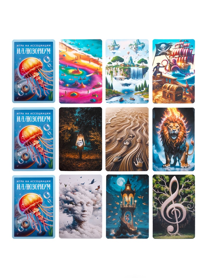 Настольная игра «Иллюзориум» - захватывающая игра на ассоциации и воображение которая погружает участников в мир образов, фантазии и неожиданных ассоциаций. Игрокам предстоит не только угадывать задуманные образы, но и проявлять креативность, придумывая собственные подсказки. Такой формат делает каждую партию уникальной и непредсказуемой, а процесс - по-настоящему захватывающим.