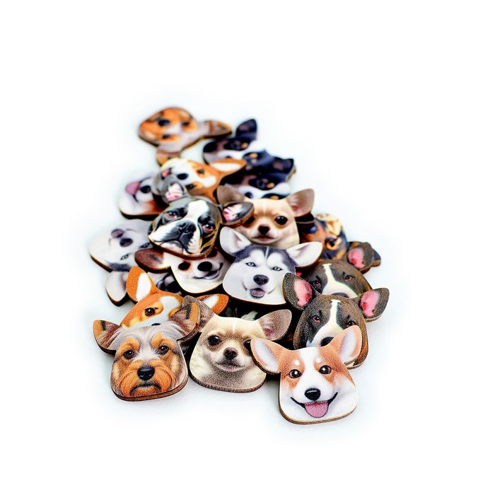- 24 яркие фишки с изображениями очаровательных пёсиков, которые не оставят равнодушным ни одного игрока.