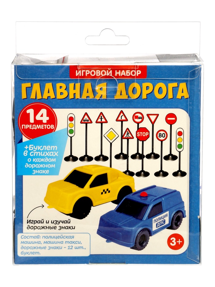 Игровой набор «Главная дорога» 2 машинки и 12 дорожных знакв 09466