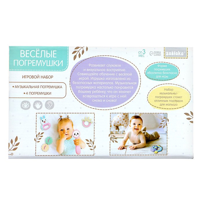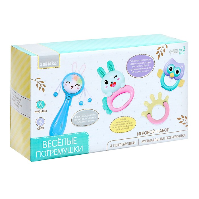 Технические характеристики Игровой набор «Весёлые погремушки», звук, свет, цвет голубой