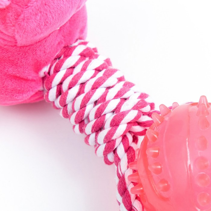 Игрушка для собак 3-в-1 «Бегемот»: канатная, мягкая с пищалкой, мяч TPR, 20 см, розовая