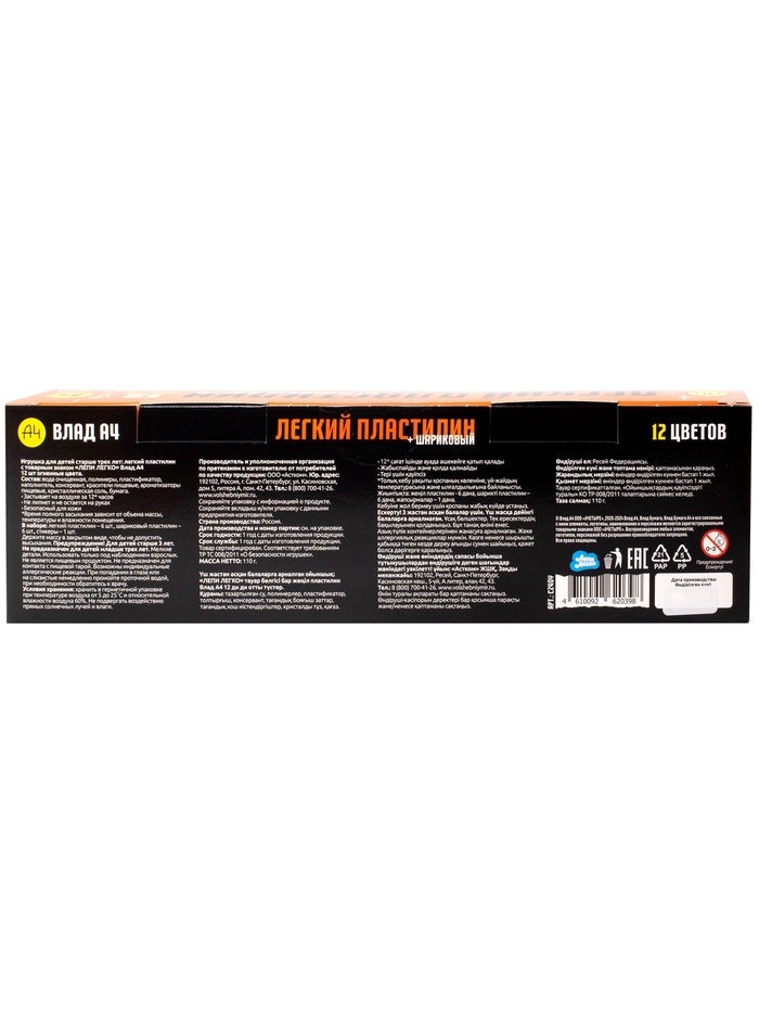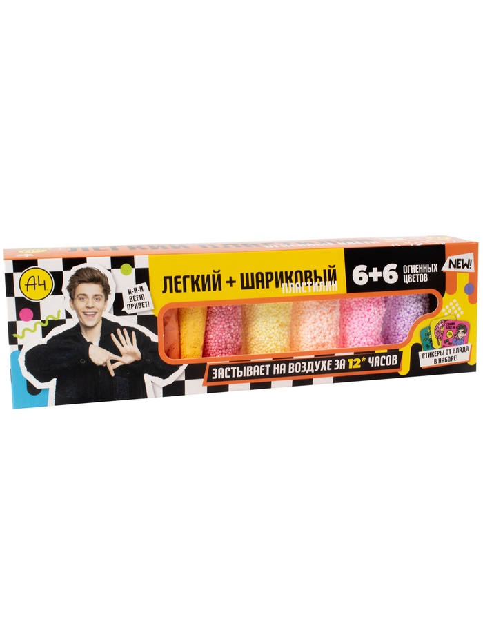 Технические характеристики Игрушка в наборе Легкий пластилин Влад А4 12 шт с шариковым пластилином огненные цвета коробка 10948