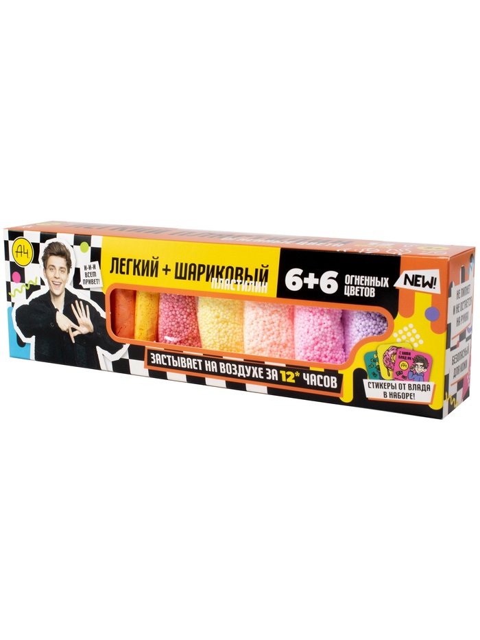 Игрушка в наборе Легкий пластилин Влад А4 12 шт с шариковым пластилином огненные цвета коробка 10948