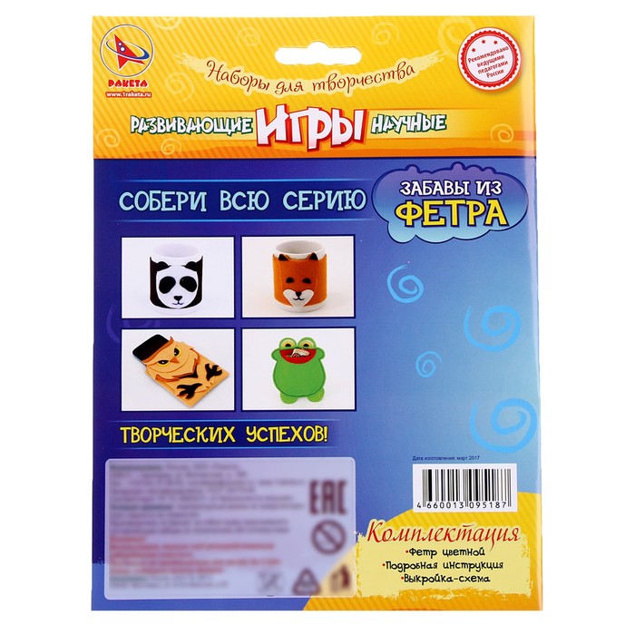 Технические характеристики Игрушки своими руками «Забавы из фетра» «Лягушонок»