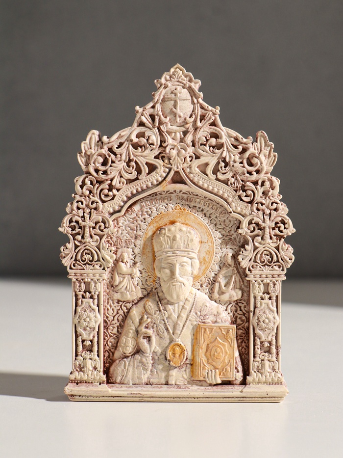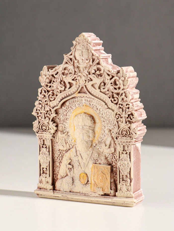 Технические характеристики Икона с подвесом "Николай Чудотворец", размер 12х8х2 см,гипс, роспись