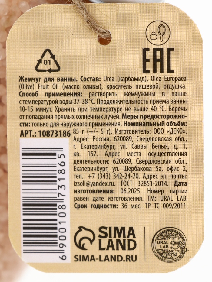 Жемчуг для ванны во флаконе, 85 г, аромат имбирный пряник, URAL LAB