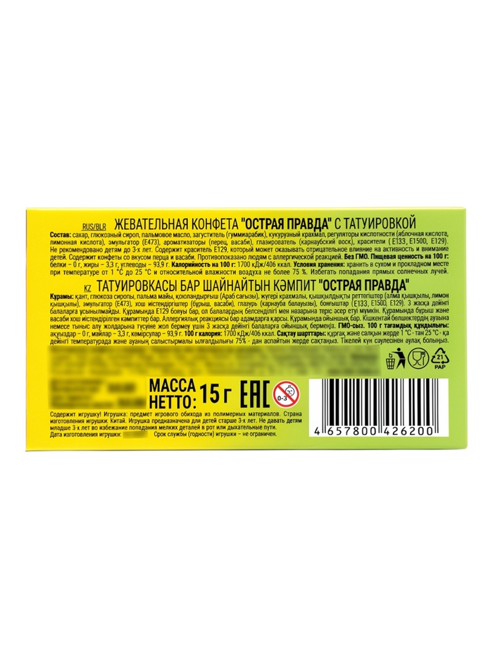 Жевательная конфета "Острая Правда" с татуировкой 15гр