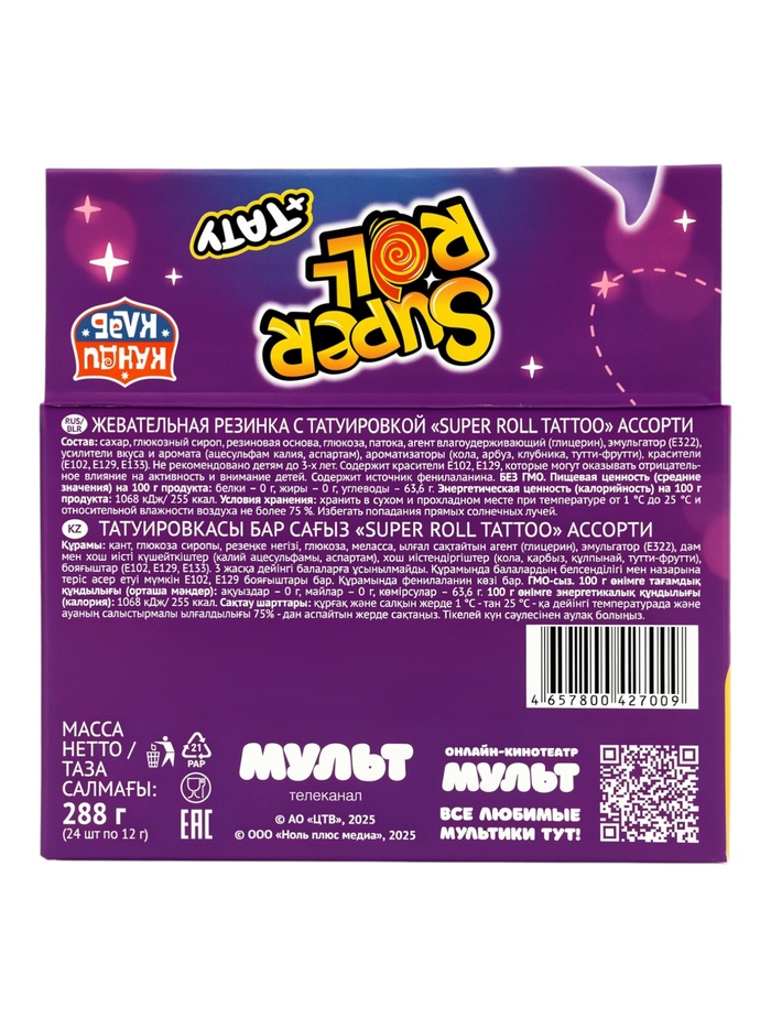 Жевательная резинка с татуировкой "Super Roll Tattoo" (Семь Королевств) ассорти 12г