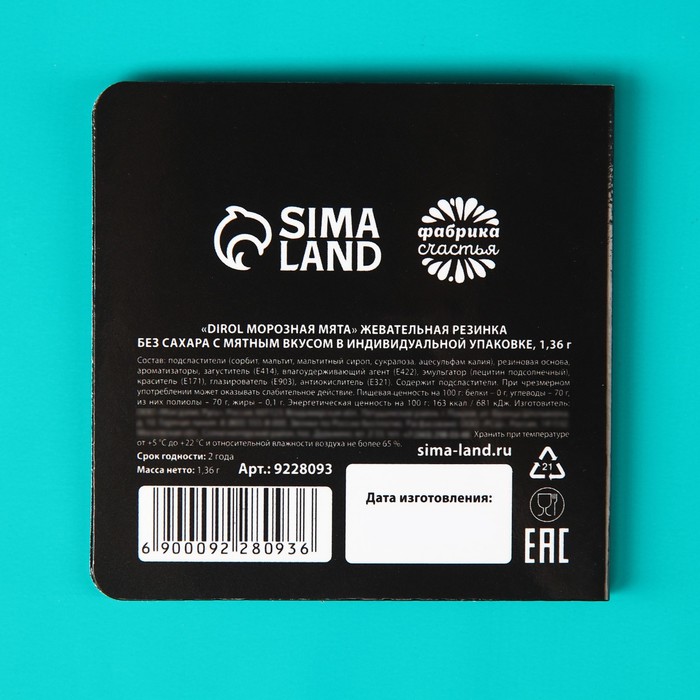 Технические характеристики Жевательная резинка в открытке «От лишних пережуваний», 1 шт. х 1,36 г.