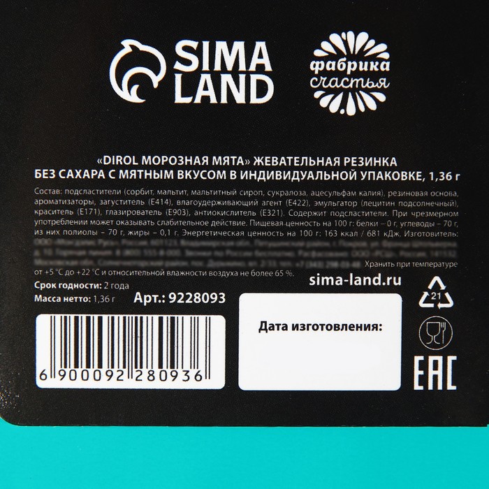 | Примечание | Обратите внимание на условия хранения товара, которые указаны на упаковке. Дата изготовления зависит от партии поставки. При оформлении заказа, просим запрашивать актуальные сроки годности у менеджера. Полная информация о продуктах ТМ «Фабрика Счастья» Хранение и транспортировка при температуре не выше +18 °C |