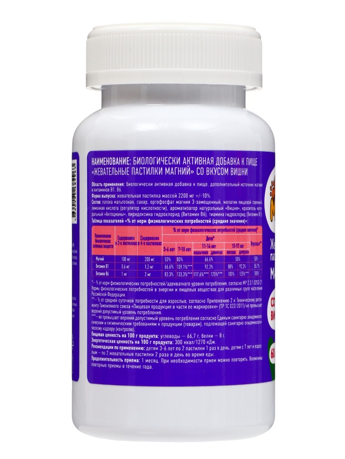 Жевательные пастилки «Магний» для детей, со вкусом вишни, 60 шт.